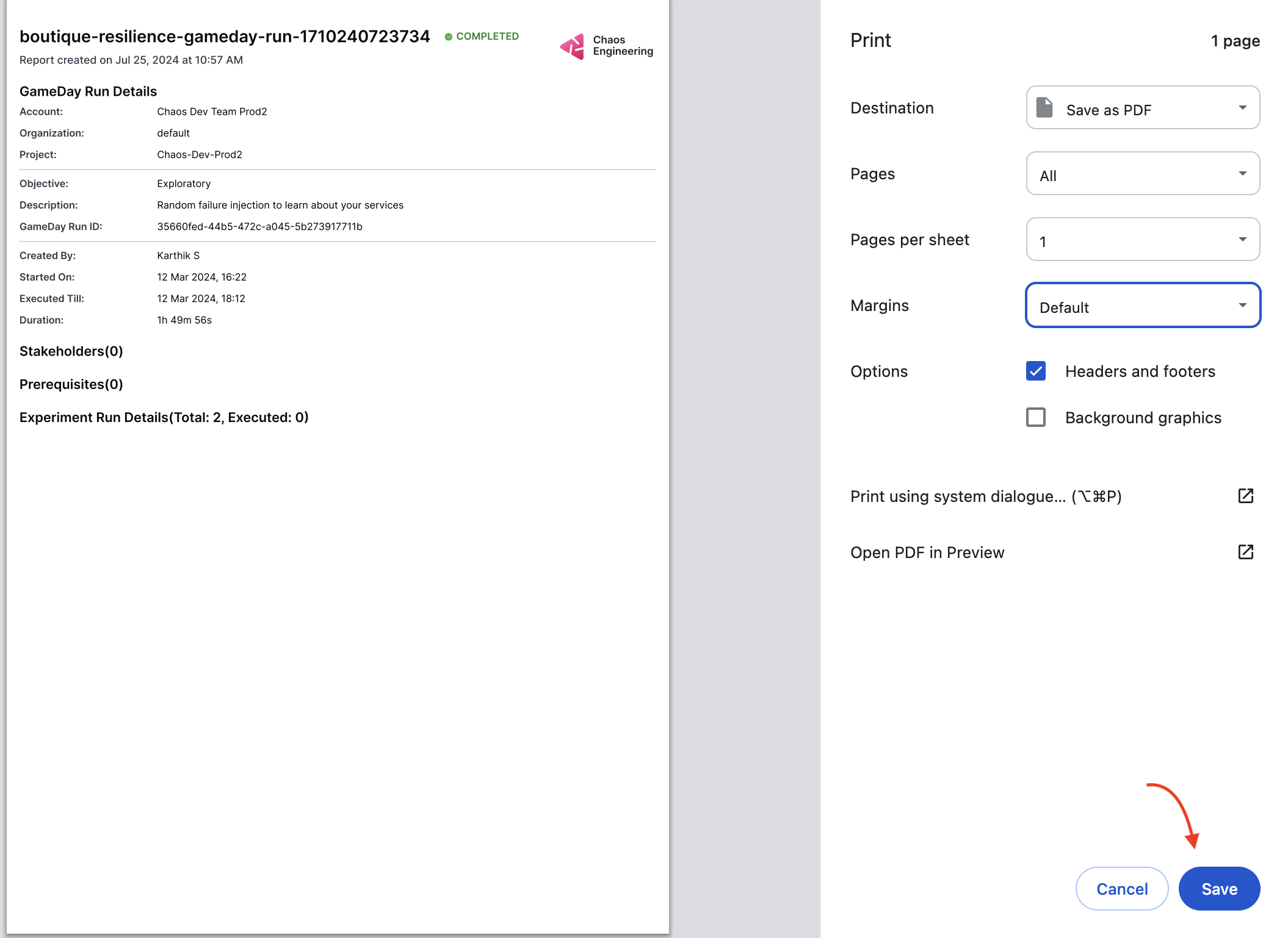 Download GameDay run report
