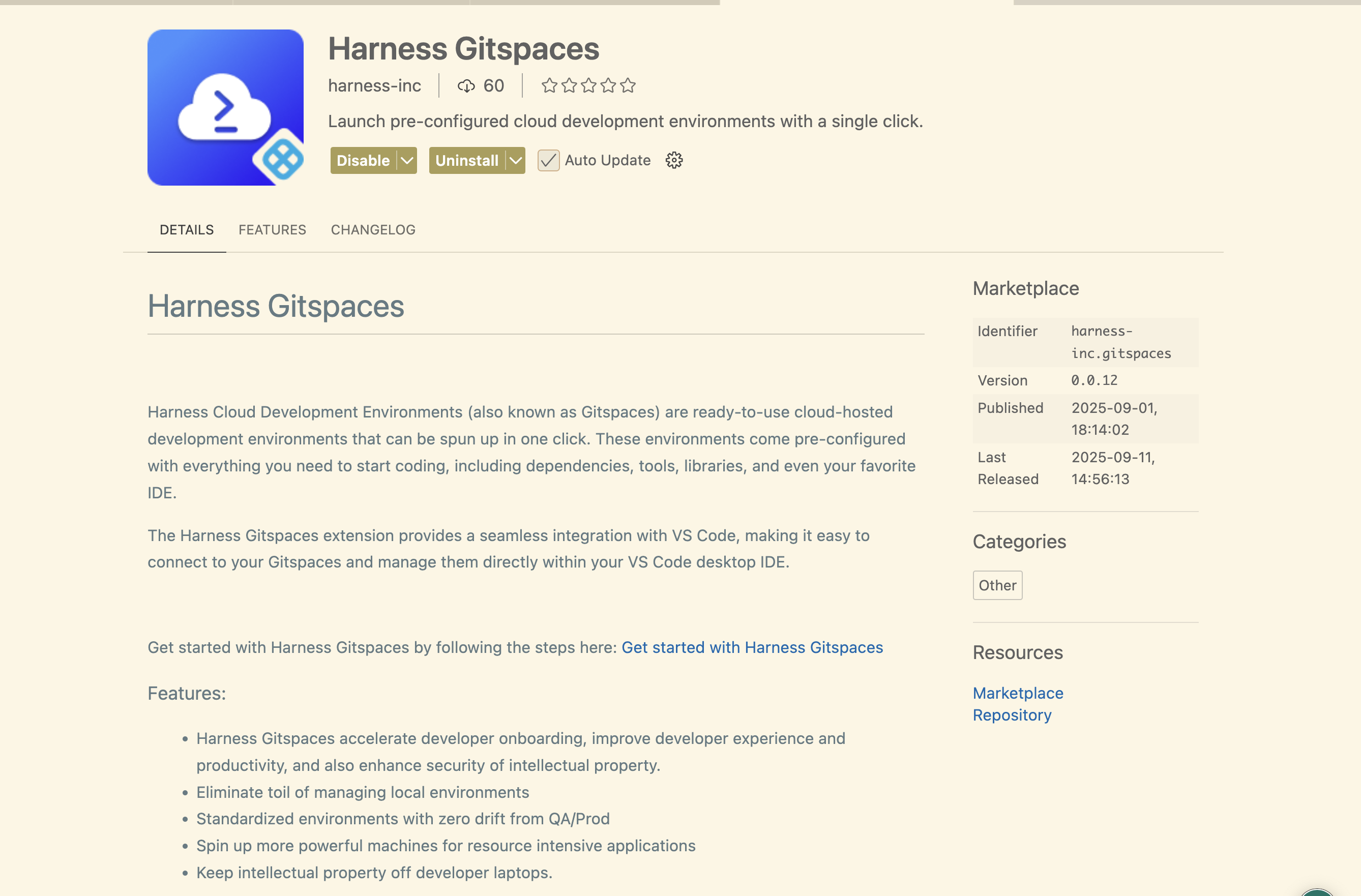 The Harness Gitspaces plugin is a Windsurf extension that lets you connect to and manage your Gitspaces directly in the Windsurf IDE. It provides a seamless workflow so you can work on Gitspaces without leaving the IDE. With the plugin, you can: