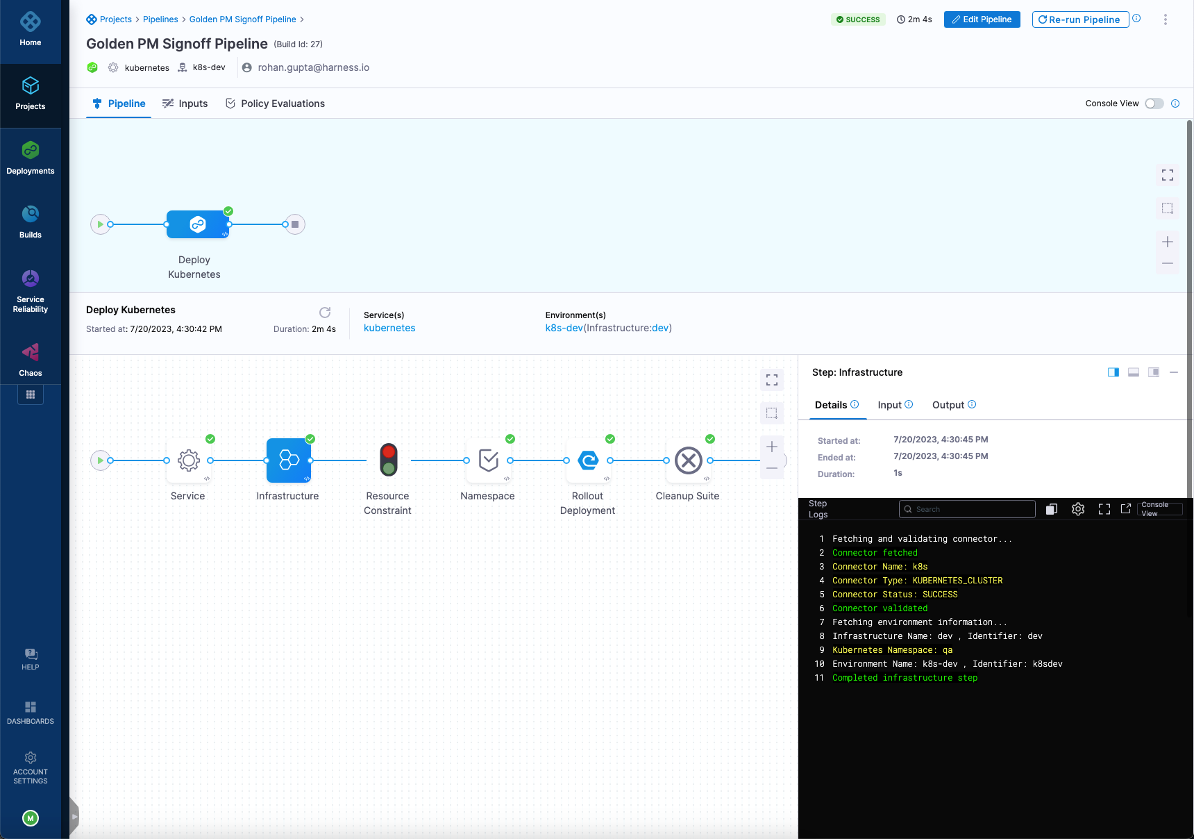 - The Kubernetes rollout deployment task leverages the infrastructure definition and Harness Kubernetes Cluster connector to authenticate and deploy into the target cluster.