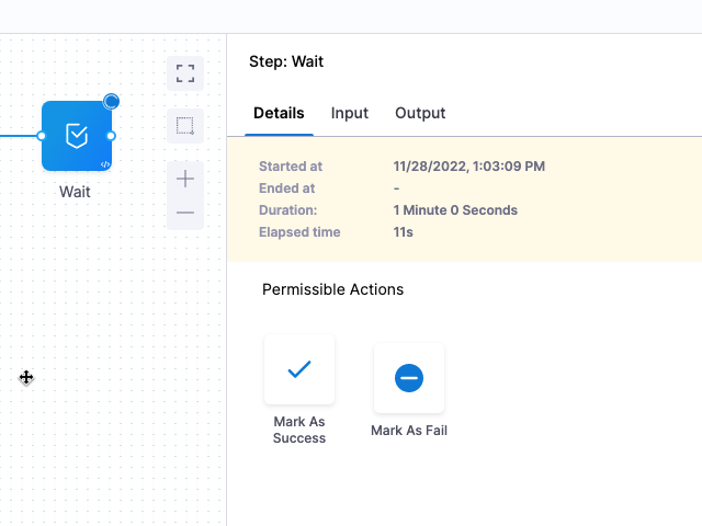 When the Wait step runs, the duration is displayed in its Details.