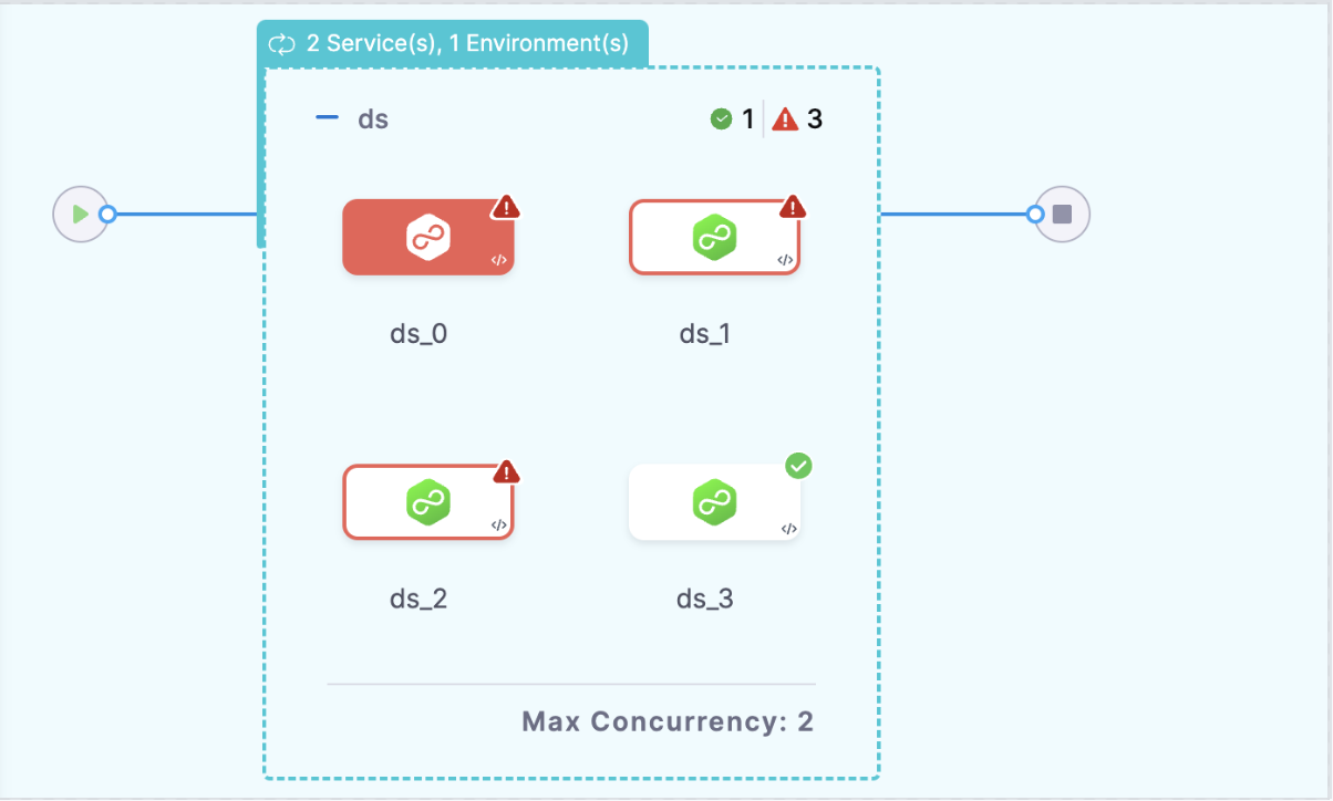 This ensures that even if one or more infrastructure-service combinations fail, the remaining ones will continue to execute. For instance, if infra1 encounters issues, the system will continue deploying to infra2.