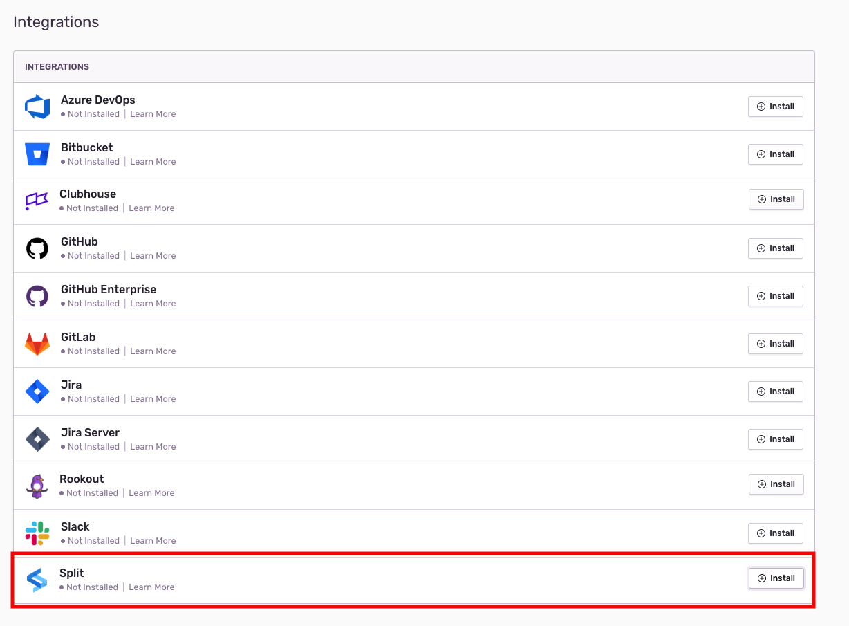 1. Install the Harness FME Integration by navigating to Organization Settings > Integrations and clicking "Install" on that page. Accept and Install the integration and make sure to copy down the Installation ID that then gets shown.