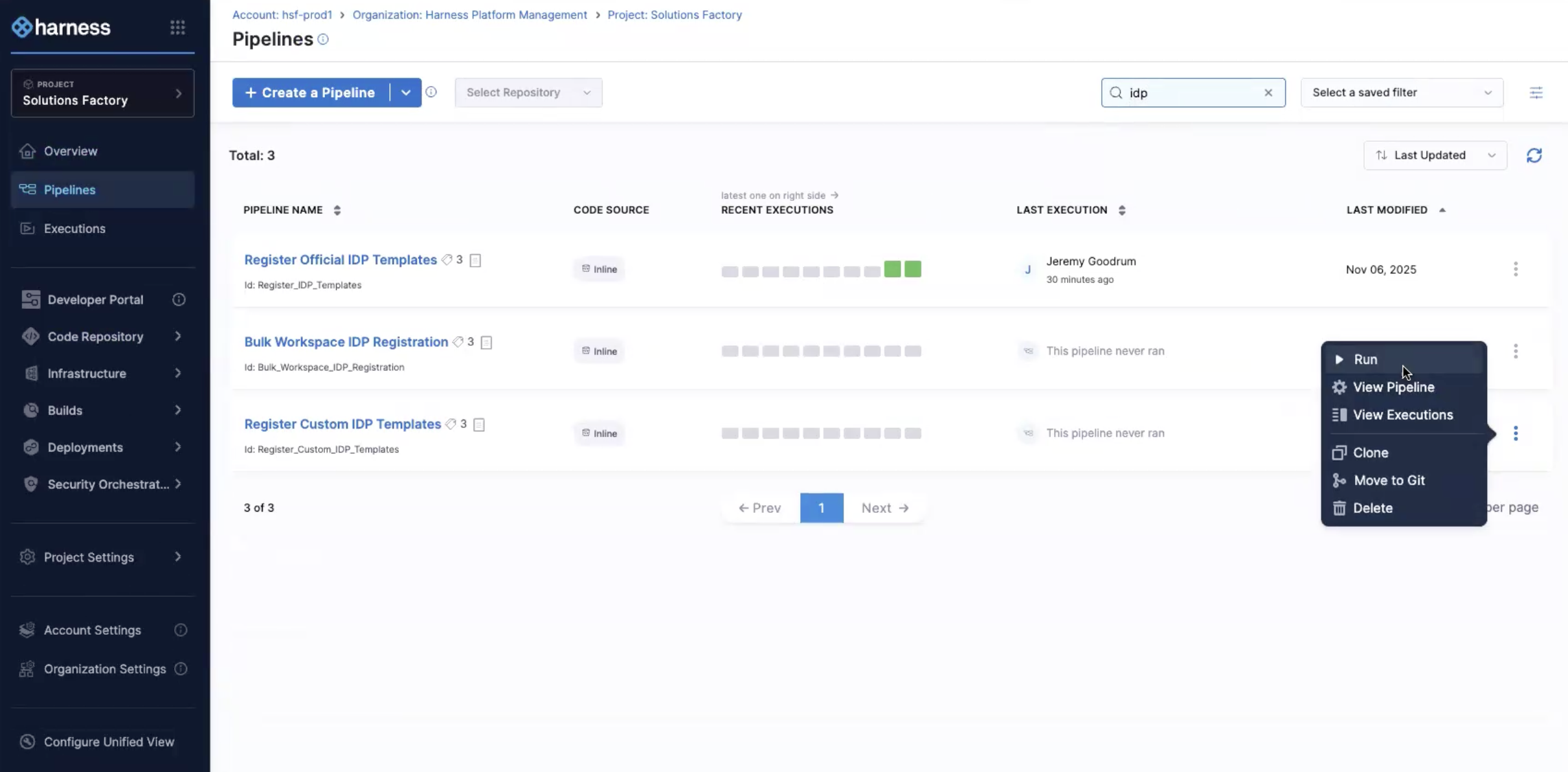 8. Go to Pipelines → Run Register Custom IDP Templates