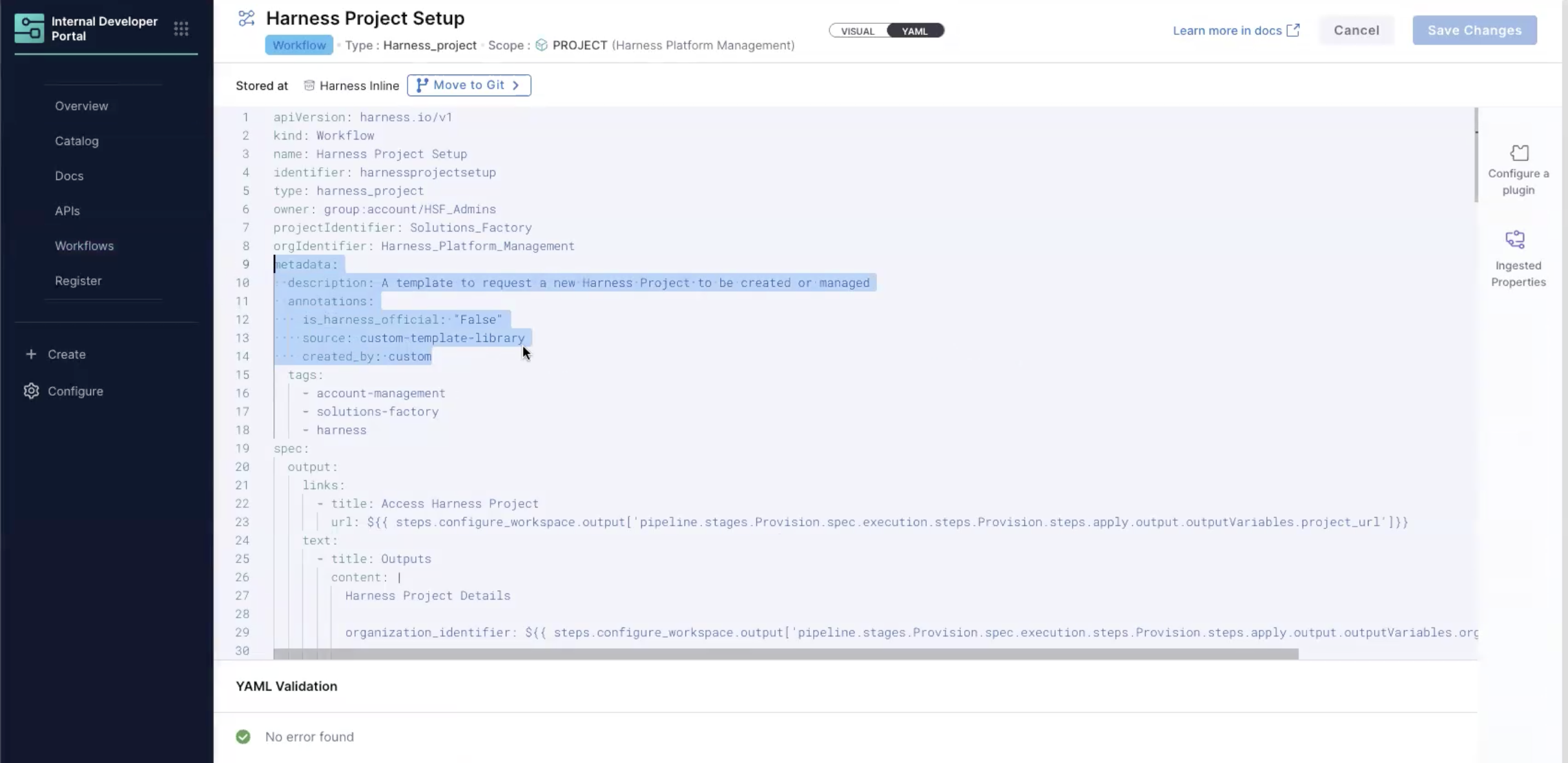 • Go into IDP → Workflows → Harness Project Setup