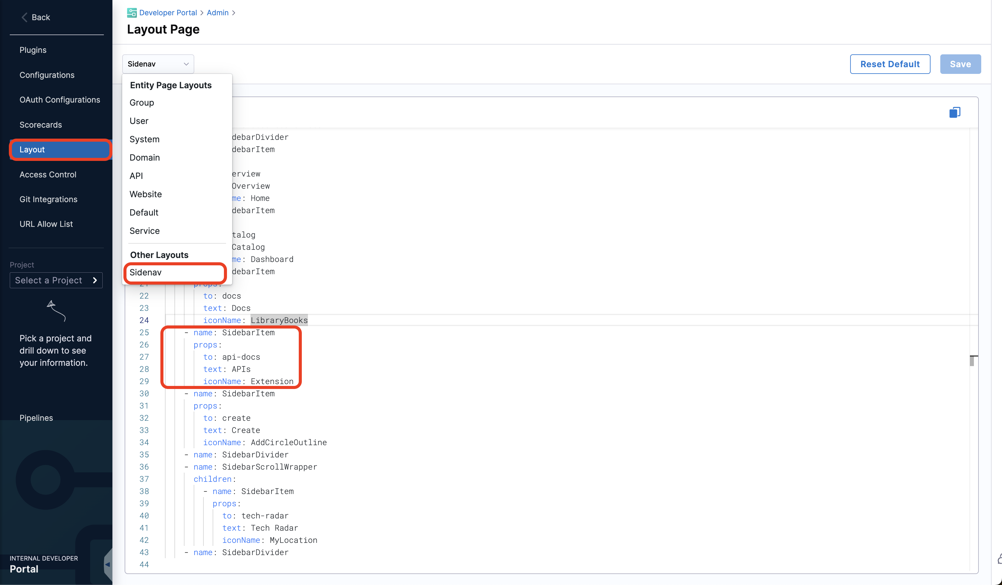 1. Once the plugin is Enabled, to add it in your Sidenav as shown in the image go to the Layout under Admin.