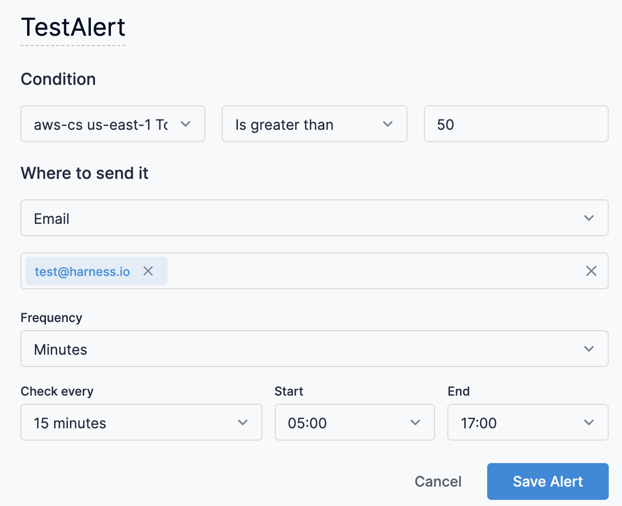 - Set the frequency at which dashboard will check your data for changes to send an alert notification (if the alert conditions are met). These are the available frequency options: