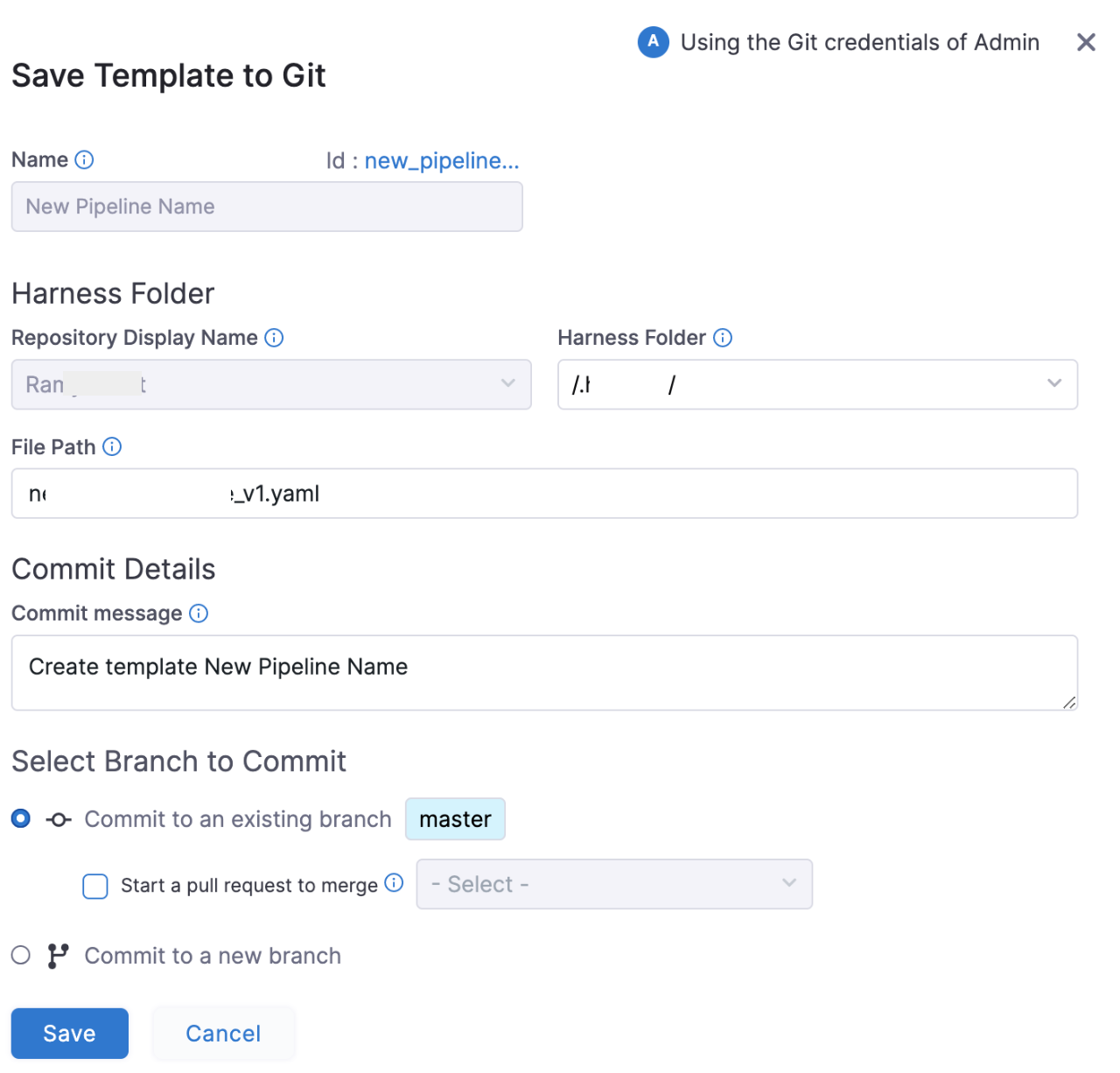 You'll see the Git Repository Details option only if you're creating a template on a Git-enabled project. For more information, go to Harness Git Experience overview.