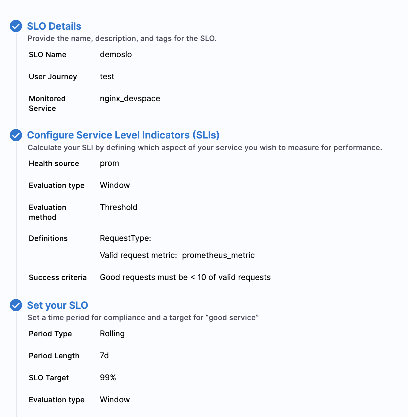 For more information about SLOs and verification, see Create and manage SLOs and Verification overview.