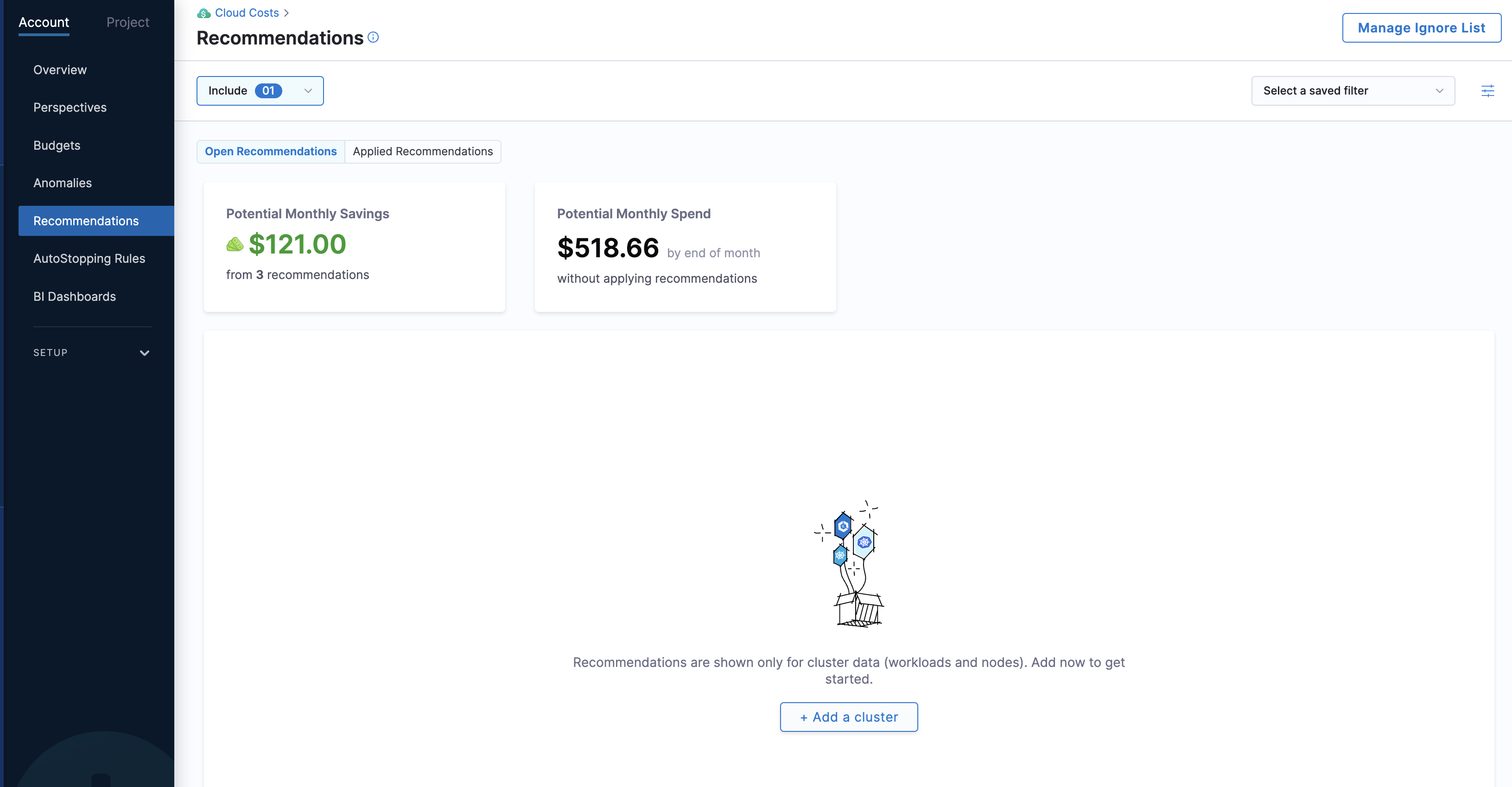 Enhanced Recommendation Management: We’ve added support for temporarily ignoring recommendations. Users can now ignore a recommendation for 7, 15, or 30 days, or ignore it permanently. Once the selected duration expires, the recommendation will automatically move back to the Open tab on the Recommendations page. [CCM-27645]