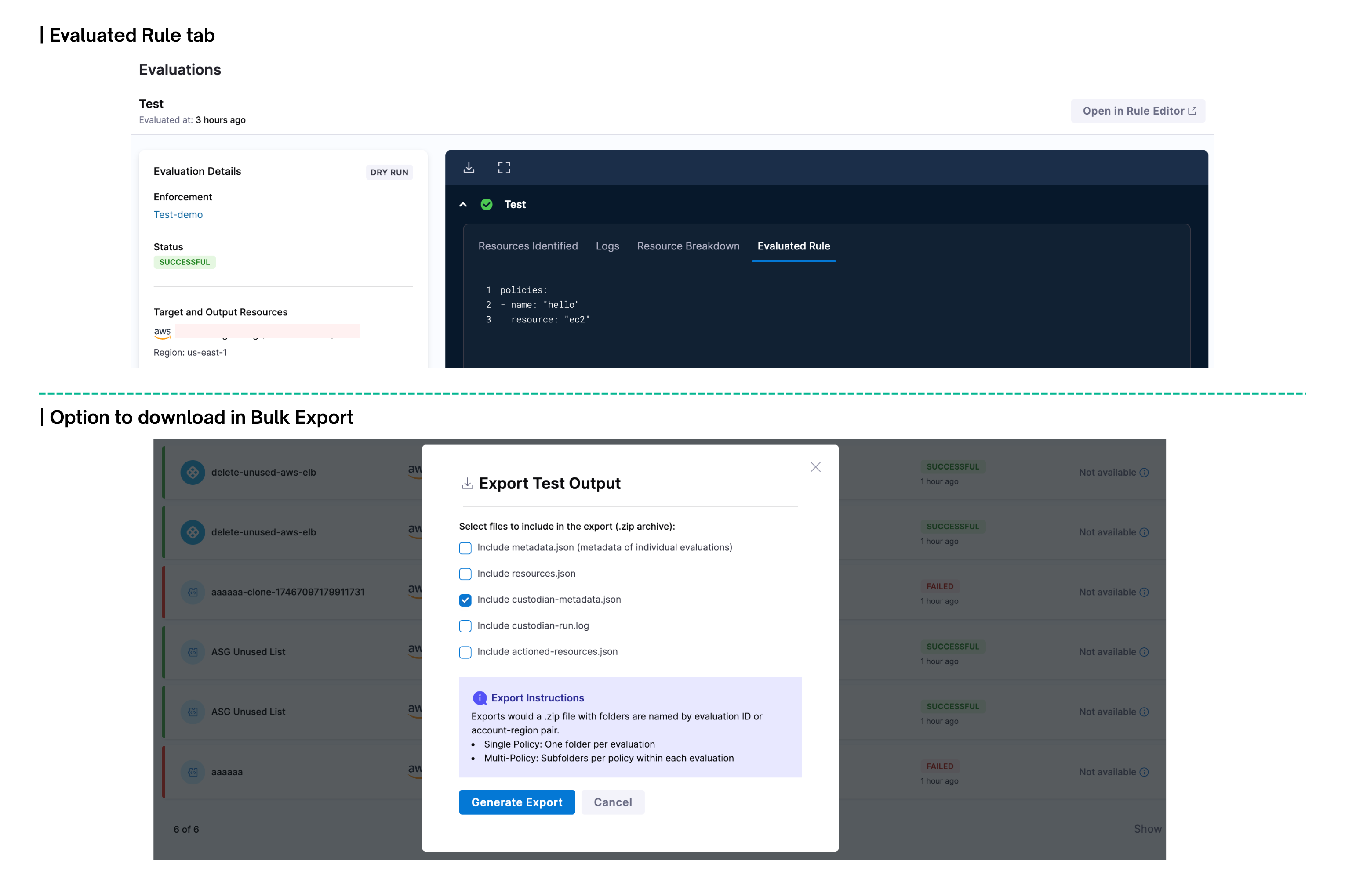 Enhanced Governance Exports: Extended CSV export functionality for Governance recommendations to include Action Type and Evaluated At columns, providing more comprehensive compliance reporting. [CCM-26912]