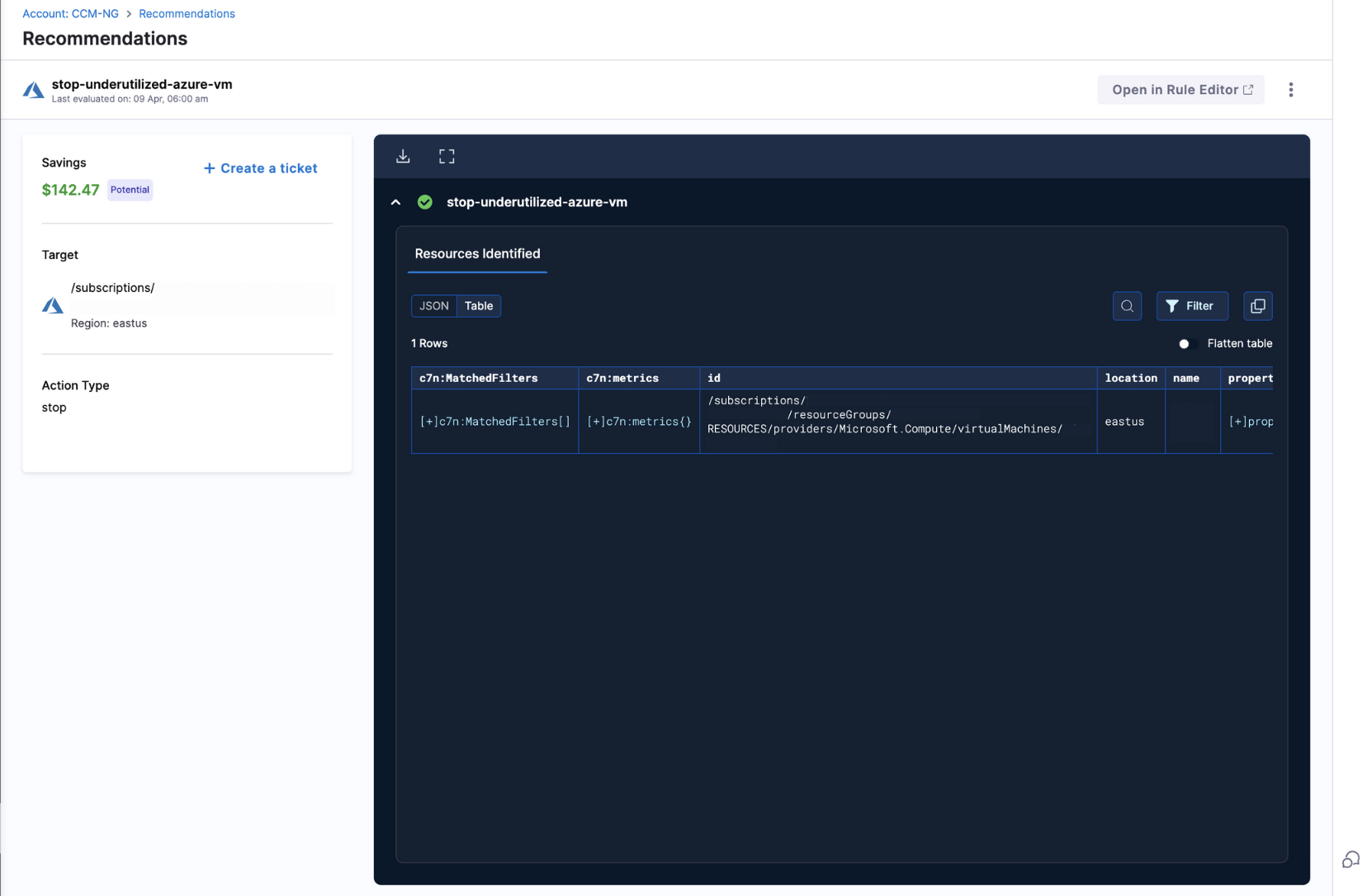 Savings will be calculated for rules that are created and resources are being utilized. Rules created with valid resources will display savings numbers as long as the resource is valid and cost data is available in the Cloud Usage Report (CUR). Resources that are onboarded in "Down" state and not used after rule creation will not show any savings, as the details of such resources will be completely missing in the CUR.
