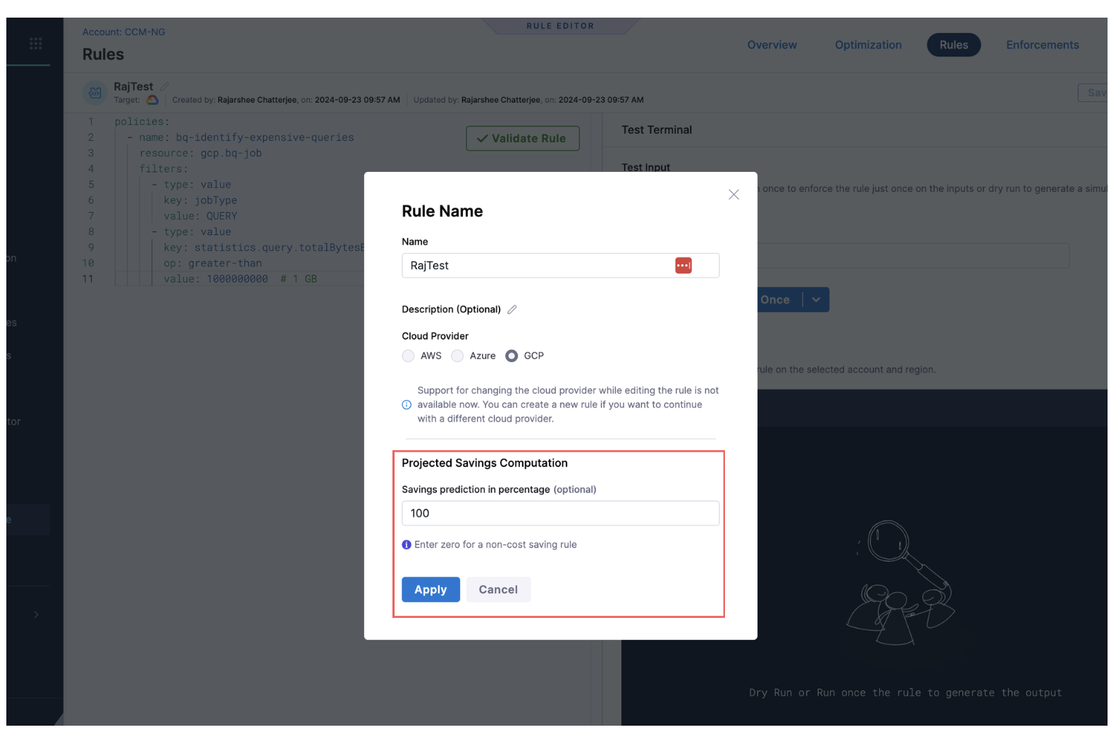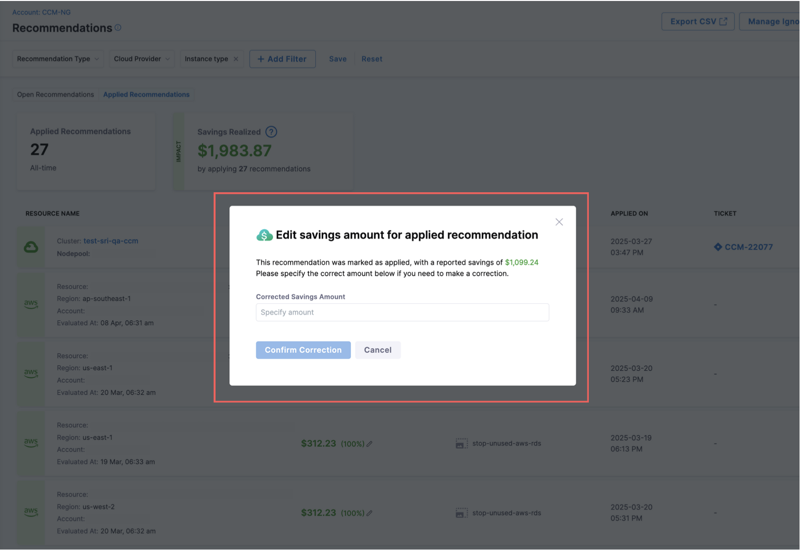 - Realized Savings from Governance Enforcements: We’ve added support for showing realized savings for enforcements. On both the enforcement list page and the enforcement details page, monthly savings will now be displayed for non–dry run enforcements. [CCM-27472]