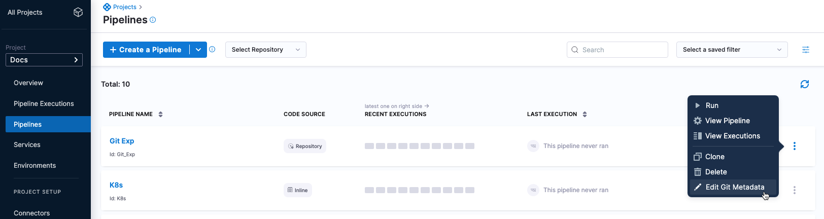 - Fixed an issue where pipeline execution status was not being sent to Git, preventing users from monitoring pipeline progress within their Git repository. This was due to a Git connector configuration issue, which has now been resolved. (PIPE-30761, ZD-97158, ZD-99034)